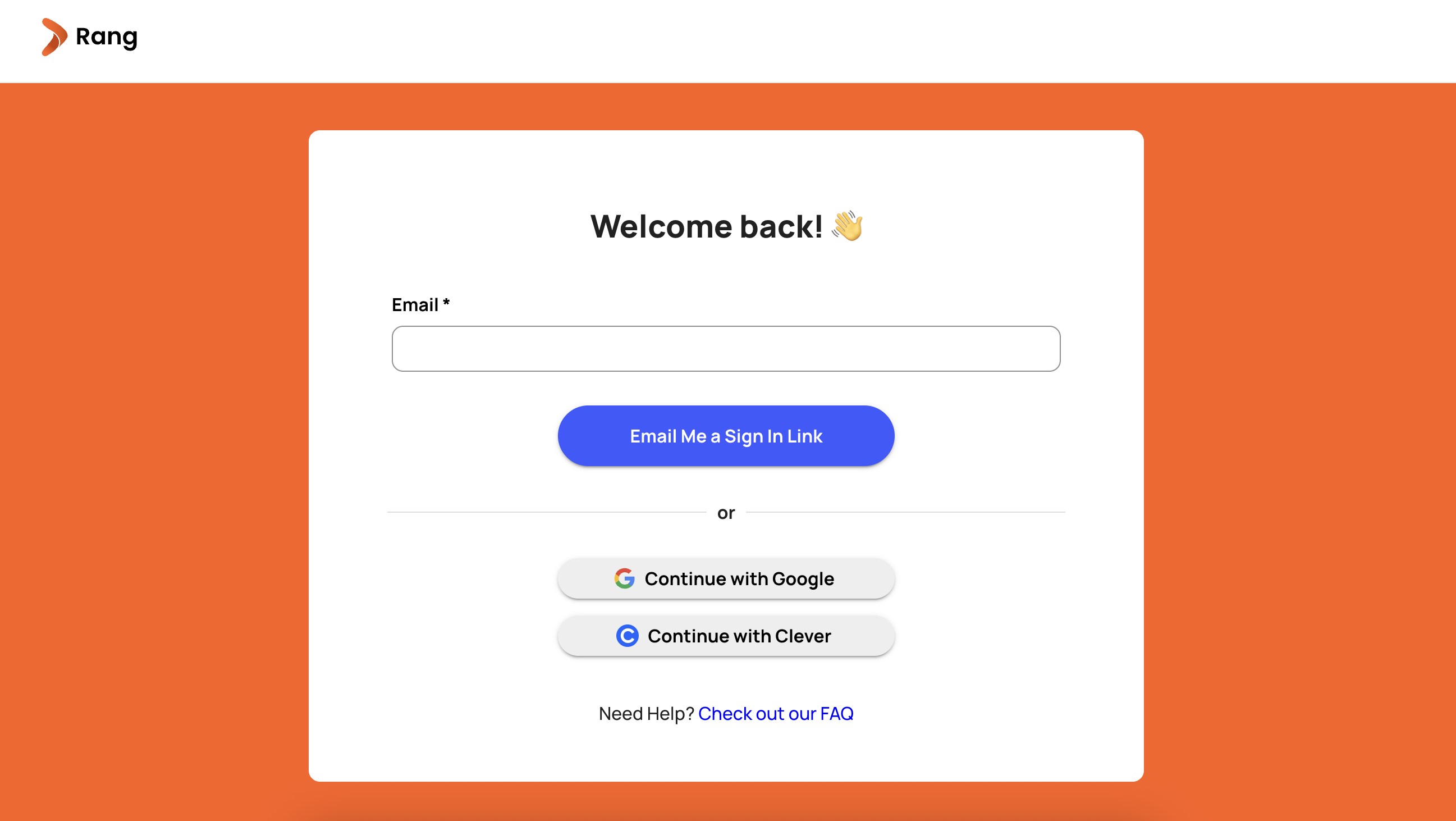 Once school starts, log in with your personal email at www.app.rang.com or on our mobile app available for iPhone and Android.